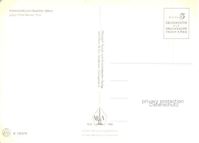 73276901 Seefeld Tirol Gegen Hohe Munde postalisch nicht gelaufen Erhaltung siehe scans [LiesaD40] KatCode: 11390332070351