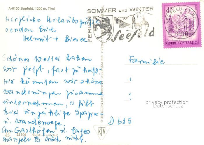 73146715 alte Postkarte Seefeld Tirol Gesamtansicht mit Alpenpanorama Seekirchlein Moesern Tiroler Schmuckkastl postalisch gelaufen Erhaltung siehe scans [FriedD77] KatCode: 11390332070351