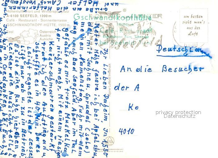 73125159 alte Postkarte Seefeld Tirol Gschwandtkopf-Huette Hohe Munde Zugspitzmassiv postalisch gelaufen Erhaltung siehe scans [PaolaD17] KatCode: 11390332070351