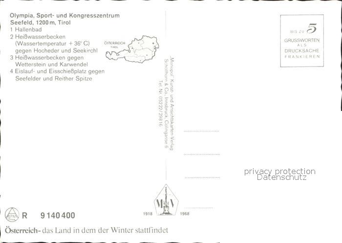 72141690 Seefeld Tirol Hallenbad Heisswasserbecken Hocheder Seekirchl Wetterstein Karwendel Eislauf und eisschiessplatz postalisch nicht gelaufen Erhaltung siehe scans KatCode: 11390332070351