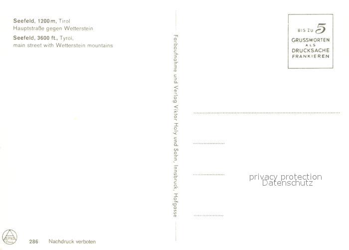 72940504 Seefeld Tirol Hauptstrasse Wetterstein postalisch nicht gelaufen Erhaltung siehe scans [PaolaD17] KatCode: 11390332070351
