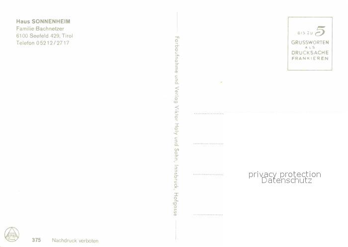 12776644 Seefeld Tirol Haus Sonnenheim postalisch nicht gelaufen Erhaltung siehe scans [WerneD78] KatCode: 11390332070351