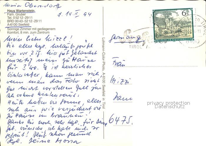 72492363 alte Postkarte Seefeld Tirol Haus Wartenstein postalisch gelaufen Erhaltung siehe scans KatCode: 11390332070351
