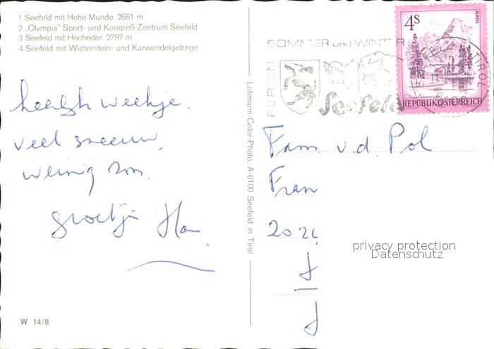 71981946 alte Postkarte Seefeld Tirol Hocheder Wettersteingebirge postalisch gelaufen Erhaltung siehe scans KatCode: 11390332070351