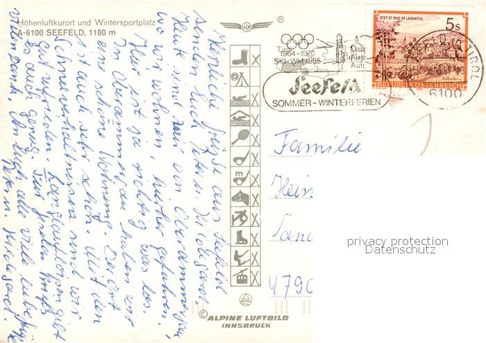 73311479 alte Postkarte Seefeld Tirol Hoehenluftkurort Wintersportplatz Wettersteingebirge Fliegeraufnahme postalisch gelaufen Erhaltung siehe scans [FriedD77] KatCode: 11390332070351