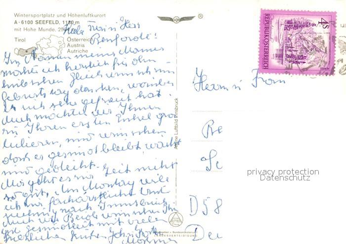 73321529 alte Postkarte Seefeld Tirol Hohe Munde Fliegeraufnahme postalisch gelaufen Erhaltung siehe scans [PaolaD17] KatCode: 11390332070351