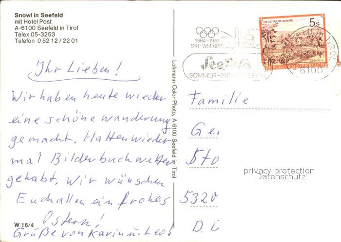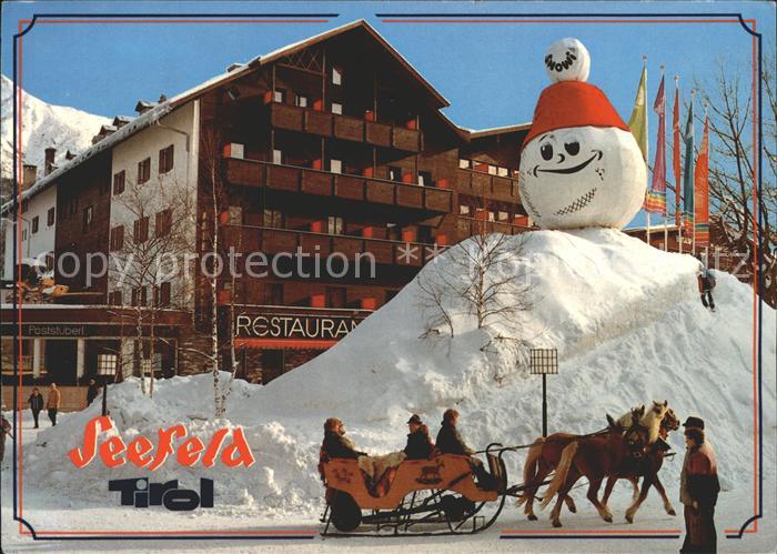 71950590 alte Postkarte Seefeld Tirol Hotel Post Pferdeschlitten postalisch gelaufen Erhaltung siehe scans KatCode: 11390332070351