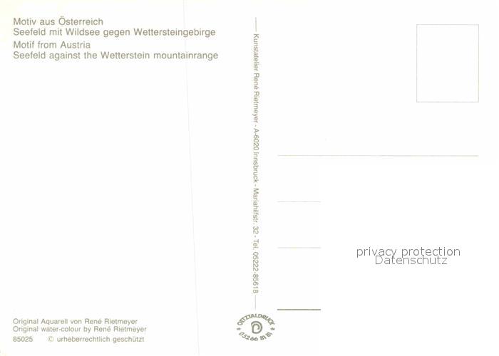 72716516 Seefeld Tirol Kuenstlerkarte Wildsee gegen Wettersteingebirge postalisch nicht gelaufen Erhaltung siehe scans [LiesaD40] KatCode: 11390332070351