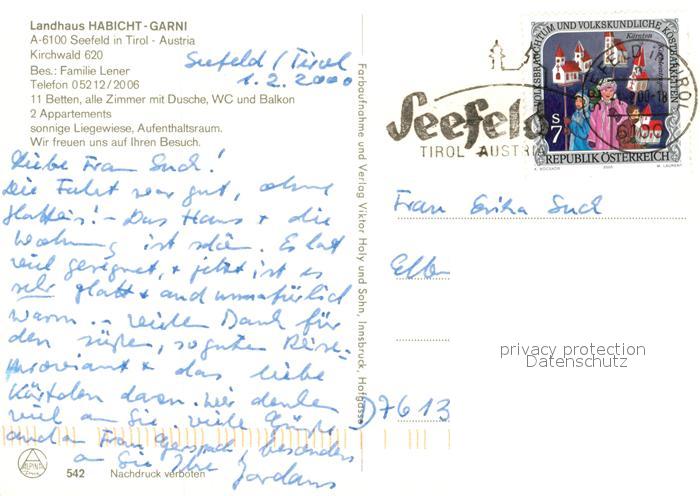 13188425 alte Postkarte Seefeld Tirol Landhaus Habicht-Garni postalisch gelaufen Erhaltung siehe scans [PaolaD17] KatCode: 11390332070351