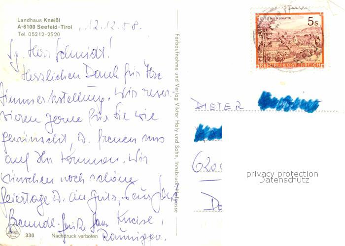 72709559 alte Postkarte Seefeld Tirol Landhaus Kneissl Gesamtansicht mit Alpenpanorama postalisch gelaufen Erhaltung siehe scans [FriedD77] KatCode: 11390332070351