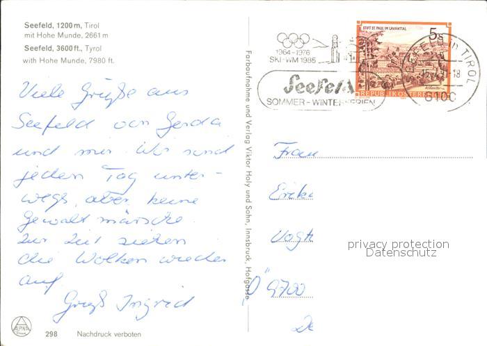 72517948 alte Postkarte Seefeld Tirol mit Hohe Munde postalisch gelaufen Erhaltung siehe scans KatCode: 11390332070351