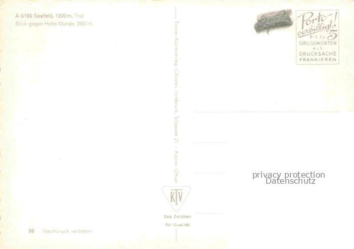 74042469 Seefeld Tirol mit Hohe Munde postalisch nicht gelaufen Erhaltung siehe scans [WerneD78] KatCode: 11390332070351