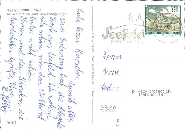 72498908 alte Postkarte Seefeld Tirol mit Wetterstein und Karwendelgebirge postalisch gelaufen Erhaltung siehe scans KatCode: 11390332070351