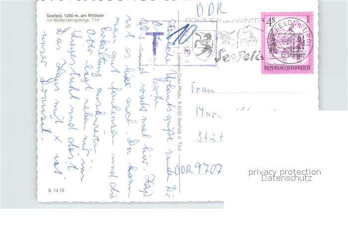 72530311 alte Postkarte Seefeld Tirol mit Wettersteingebirge Alpenflora postalisch gelaufen Erhaltung siehe scans [WerneD78 kt108box] KatCode: 11390332070351