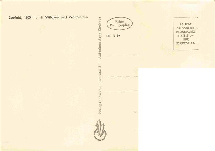 74015255 Seefeld Tirol mit Wildsee und Wetterstein postalisch nicht gelaufen Erhaltung siehe scans [WerneD78] KatCode: 11390332070351