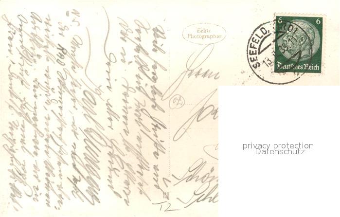 43107509 alte Postkarte Seefeld Tirol Ortsansicht mit Kirche Karwendelgebirge Arnspitzen postalisch gelaufen Erhaltung siehe scans [FriedD77] KatCode: 11390332070351