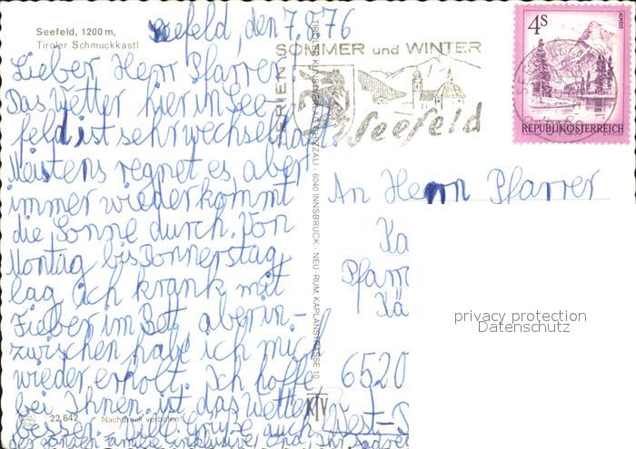 72451830 alte Postkarte Seefeld Tirol Ortspartie an der Kirche Cafe Tiroler Schmuckkastl Alpen postalisch gelaufen Erhaltung siehe scans KatCode: 11390332070351