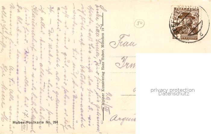 43107511 alte Postkarte Seefeld Tirol Panorama Blick gegen Hocheder Huber Karte Nr 294 postalisch gelaufen Erhaltung siehe scans [FriedD77] KatCode: 11390332070351