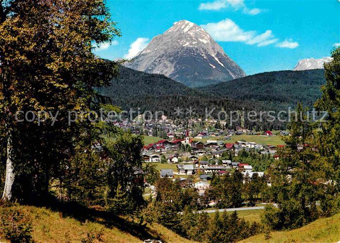 72748173 alte Postkarte Seefeld Tirol Panorama mit Hohe Munde und Zugspitze postalisch gelaufen Erhaltung siehe scans [FriedD77] KatCode: 11390332070351