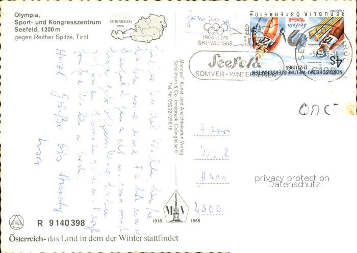 72444290 alte Postkarte Seefeld Tirol Reither Spitze Schlittschuh postalisch gelaufen Erhaltung siehe scans KatCode: 11390332070351