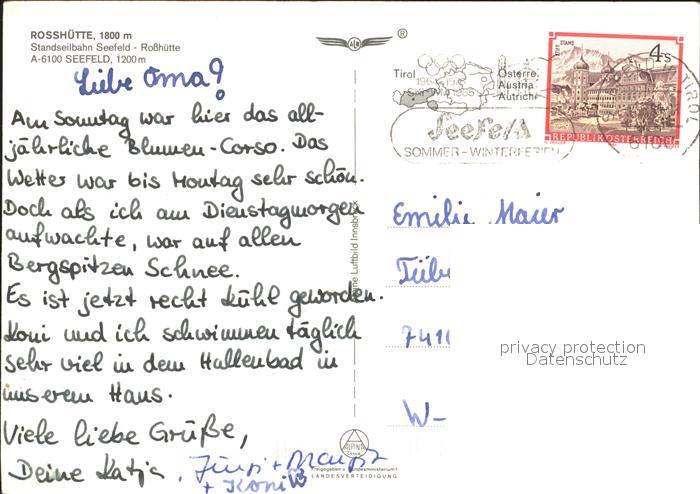72266342 alte Postkarte Seefeld Tirol Rosshuette postalisch gelaufen Erhaltung siehe scans KatCode: 11390332070351