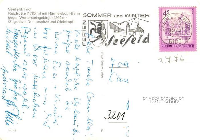 73070224 alte Postkarte Seefeld Tirol Rosshuette Haermelekopf-Bahn Wettersteingebirge postalisch gelaufen Erhaltung siehe scans [NatalD47] KatCode: 11390332070351