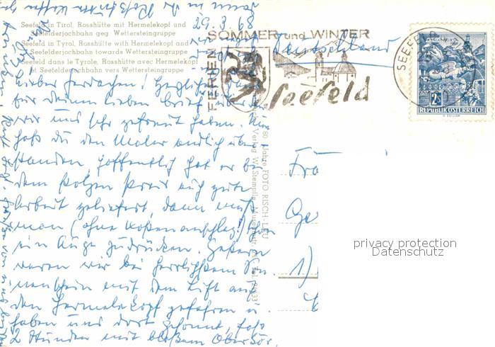 72916010 alte Postkarte Seefeld Tirol Rosshuette Hermelekopf Luftseilbahn postalisch gelaufen Erhaltung siehe scans [NatalD47] KatCode: 11390332070351