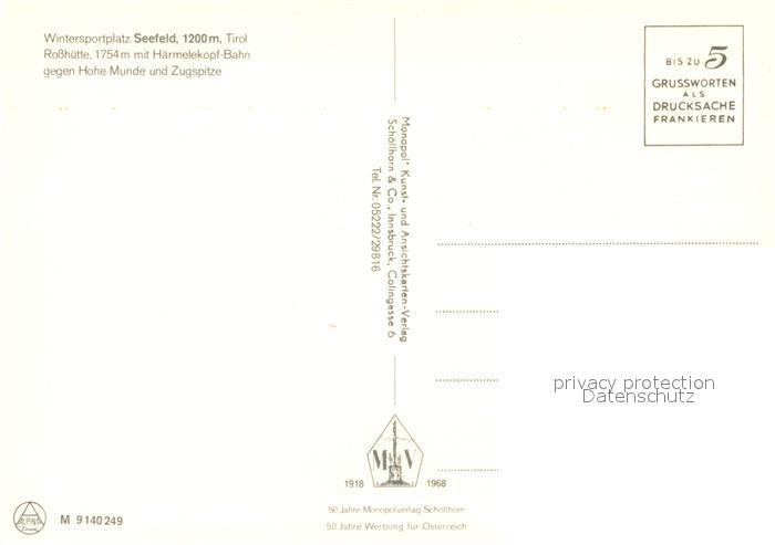 73491955 Seefeld Tirol Rosshuette mit Haermelekopf Bahn Hohe Munde und Zugspitze postalisch nicht gelaufen Erhaltung siehe scans [WerneD78] KatCode: 11390332070351