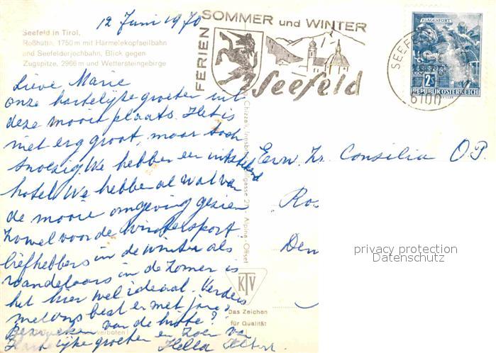 72893514 alte Postkarte Seefeld Tirol Rosshuette mit Haermelekopfseilbahn postalisch gelaufen Erhaltung siehe scans [LiesaD40] KatCode: 11390332070351