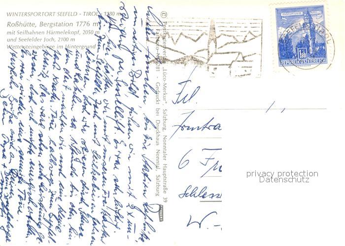 73054692 alte Postkarte Seefeld Tirol Rosshuette Seefelder Joch postalisch gelaufen Erhaltung siehe scans [NatalD47] KatCode: 11390332070351