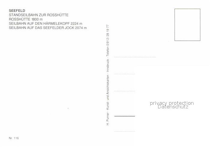 72694360 Seefeld Tirol Rosshuette Seilbahn postalisch nicht gelaufen Erhaltung siehe scans [KathaD79] KatCode: 11390332070351