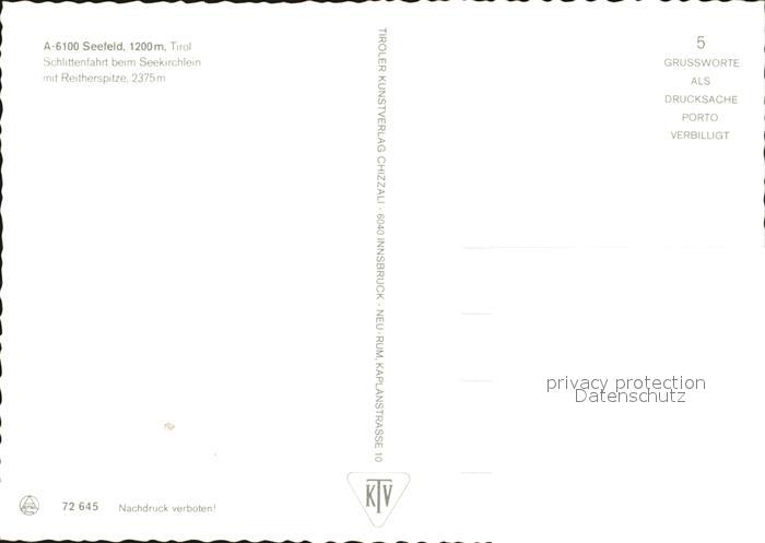 72449401 Seefeld Tirol Schlittenfahrt beim Seekirchlein mit Reitherspitze postalisch nicht gelaufen Erhaltung siehe scans KatCode: 11390332070351