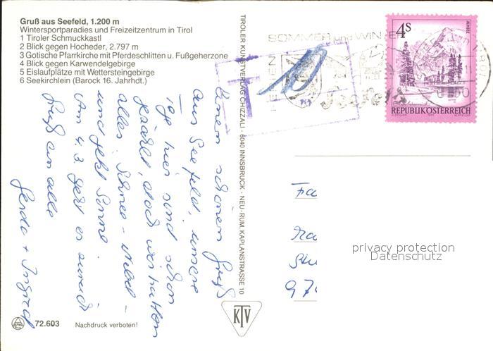 72517950 alte Postkarte Seefeld Tirol Schmuckkastl Hocheder Pferdeschlitten Seekirchlein postalisch gelaufen Erhaltung siehe scans KatCode: 11390332070351