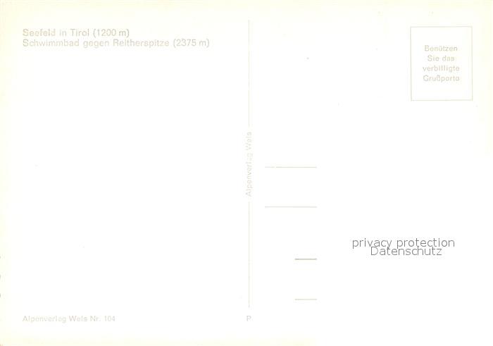 73712112 Seefeld Tirol Schwimmbad mit Reitherspitze postalisch nicht gelaufen Erhaltung siehe scans [WerneD78] KatCode: 11390332070351