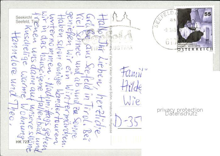 72547697 alte Postkarte Seefeld Tirol Seekirchl postalisch gelaufen Erhaltung siehe scans [WerneD78 kv017box] KatCode: 11390332070351