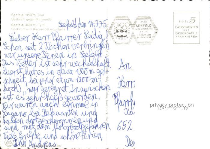 72448033 Seefeld Tirol Seekirchl gegen Karwendel postalisch nicht gelaufen Erhaltung siehe scans KatCode: 11390332070351