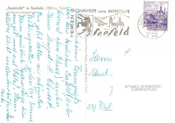 72754529 alte Postkarte Seefeld Tirol Seekirchl mit Karwendelgebirge postalisch gelaufen Erhaltung siehe scans [WerneD78] KatCode: 11390332070351