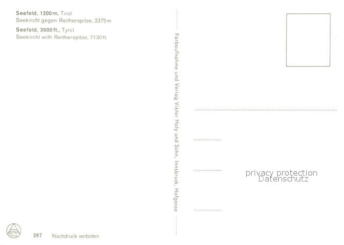 73145188 Seefeld Tirol Seekirchl mit Reitherspitze postalisch nicht gelaufen Erhaltung siehe scans [WerneD78] KatCode: 11390332070351