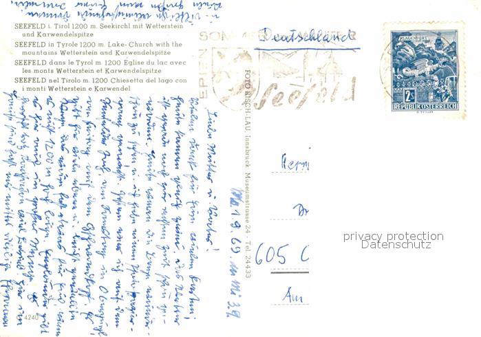 72842539 alte Postkarte Seefeld Tirol Seekirchl Wetterstein Karwendelspitze postalisch gelaufen Erhaltung siehe scans [NatalD47] KatCode: 11390332070351