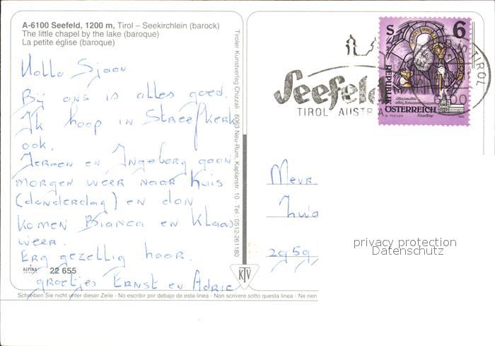 72498439 alte Postkarte Seefeld Tirol Seekirchlein postalisch gelaufen Erhaltung siehe scans KatCode: 11390332070351
