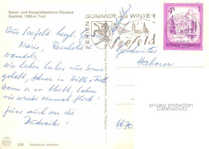 72913940 alte Postkarte Seefeld Tirol Sport Kongresszentrum Olympia postalisch gelaufen Erhaltung siehe scans [KathaD81] KatCode: 11390332070351