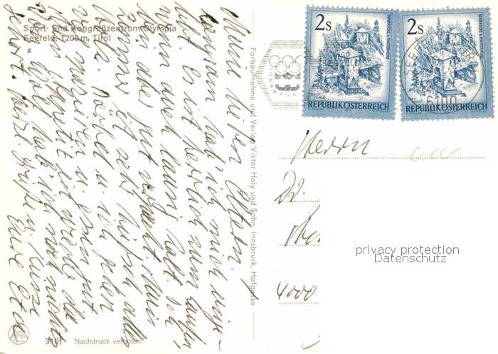 72851844 alte Postkarte Seefeld Tirol Sport- und Kongresszentrum Olympia postalisch gelaufen Erhaltung siehe scans [AndreD76] KatCode: 11390332070351