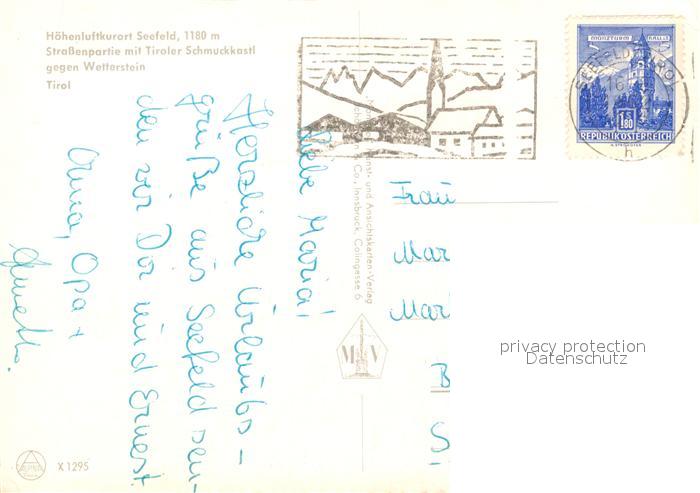 43221444 alte Postkarte Seefeld Tirol Strassenpartie mit Tiroler Schmuckkastl und Wetterstein postalisch gelaufen Erhaltung siehe scans [WerneD78] KatCode: 11390332070351