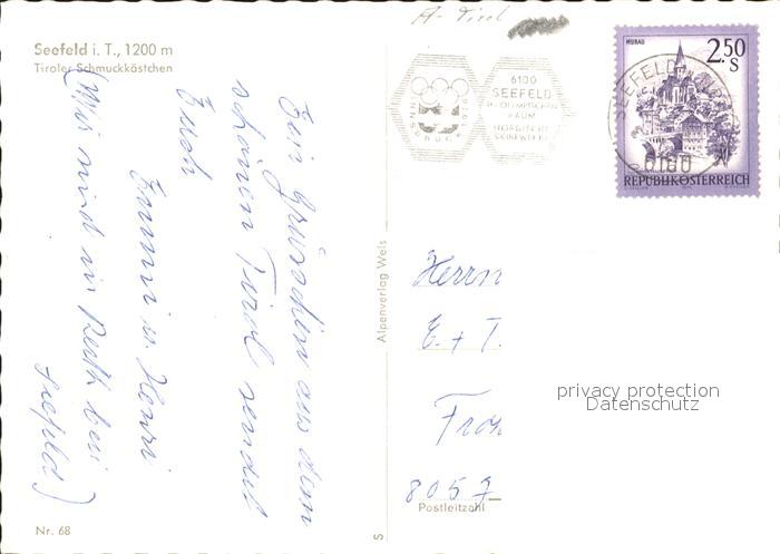71812679 alte Postkarte Seefeld Tirol Tiroler Schmuckkaestchen postalisch gelaufen Erhaltung siehe scans KatCode: 11390332070351