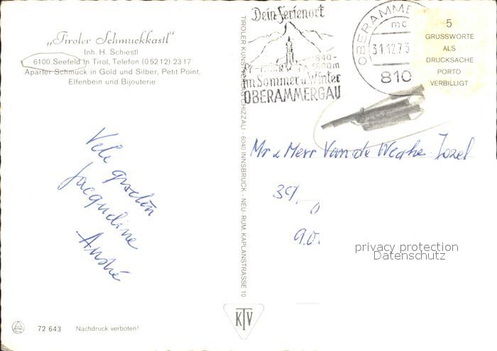 72232973 alte Postkarte Seefeld Tirol Tiroler Schmuckkastel postalisch gelaufen Erhaltung siehe scans KatCode: 11390332070351