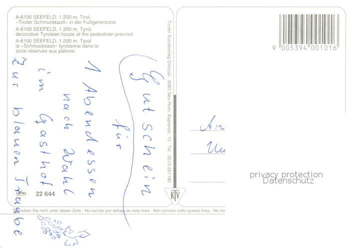 73787191 Seefeld Tirol Tiroler Schmuckkastl postalisch nicht gelaufen Erhaltung siehe scans [WerneD78] KatCode: 11390332070351