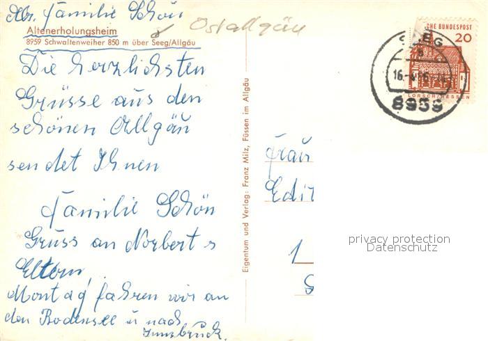 73651423 alte Postkarte Seeg Altenerholungsheim Schwaltenweiher postalisch gelaufen Erhaltung siehe scans [FriedD77] KatCode: 11110009777170