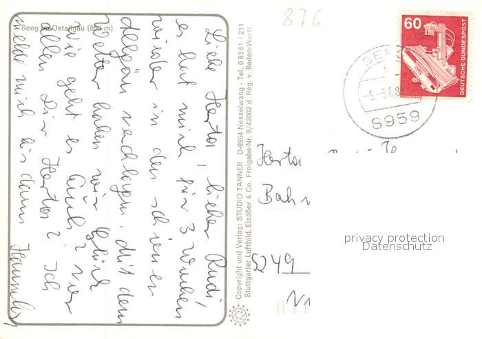 73322925 alte Postkarte Seeg Fliegeraufnahme mit Ammergauer Alpen postalisch gelaufen Erhaltung siehe scans [WerneD78] KatCode: 11110009777170