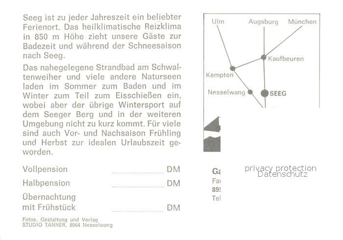 73542338 Seeg Gasthof Adler postalisch nicht gelaufen Werbekarte (keine Postkarte) Erhaltung siehe scans [KathaD81] KatCode: 11110009777170