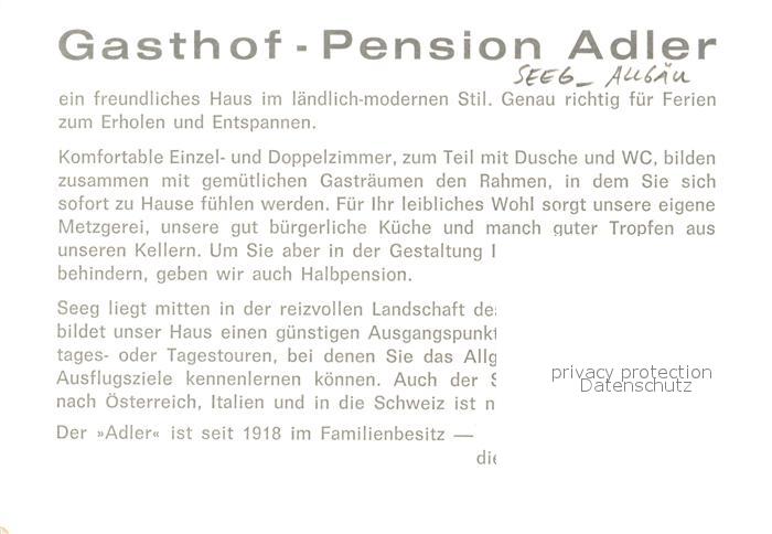 73542276 Seeg Gasthof Pension Adler postalisch nicht gelaufen Werbekarte (keine Postkarte) Erhaltung siehe scans [KathaD81] KatCode: 11110009777170